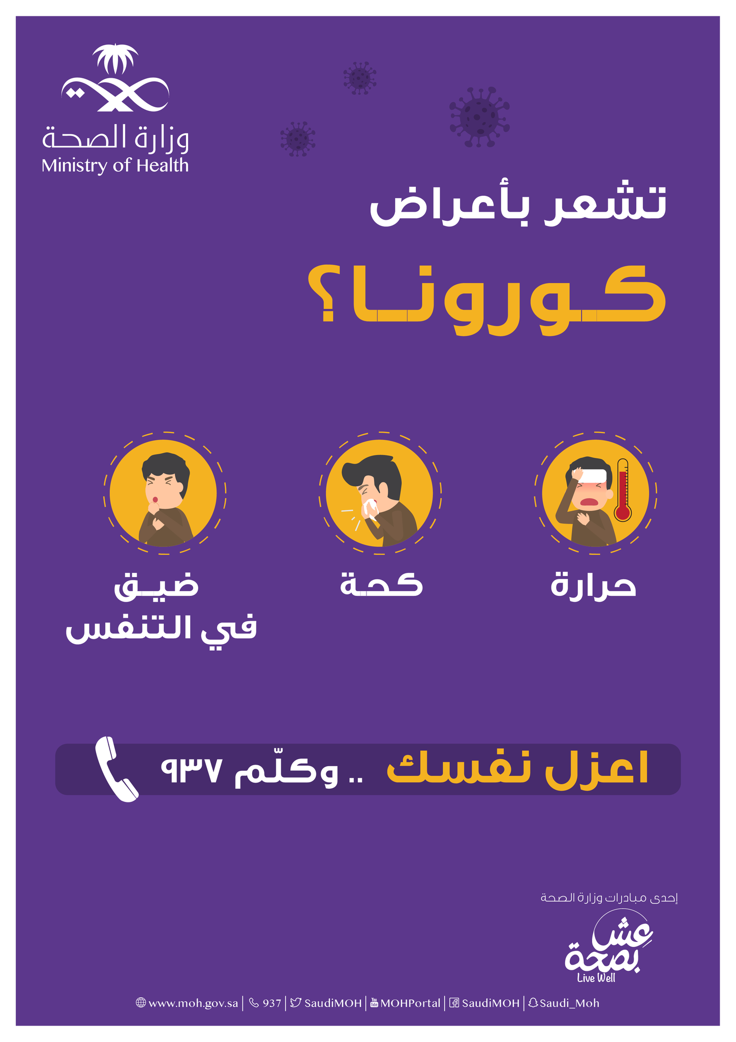 و ز ا ر ة ا لـ صـ حـ ة السعودية Twitterren التصرف الصحيح عند الشعور بأعراض فيروس كورونا اعزل نفسك وكلم الصحة 937